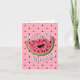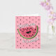 This cute pink birthday design is great for telling the birthday girl "you're one in a melon." On the front of the card is a cute smiling cartoon watermelon and watermelon seed background. Inside the text is customisation to any birthday message you want to give.