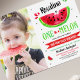 Celebrate your little one's first birthday with our one in a melon Birthday Invitation. Design features a half eaten watermelon fruits in watercolour with "one in a melon" text.