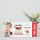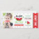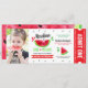 Celebrate your Birthday Party with our one in a melon first birthday Invitation. Design features a watercolor watermelon illustration with "one in a melon" in playful style text on black white background in an admit one entrance ticket pass style.