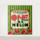 Sweet & Trendy First Birthday Design! Green Watermelon Rind Pattern Background with Cute reddish/pink watermelon flesh ONE in a corner cut centred matching frame. Finished off with a watermelon slices at the bottom. Great for summer and watermelon themed first birthday. Use as Photo Backdrop or birthday party decoration focal point. ©2022 Miss Sassy Party Designs