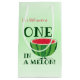 Gift bags for a One in a Melon birthday party. They feature a smiling, watermelon, cartoon fruit drawing and green and red words on a green background. These fun and foodie plates can't wait to be part of your party. Simply add them to your cart, (grab some balloons while you're in the area), and have a wonderful party.