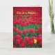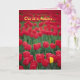 One unique tulip in a field of identical red tulips. Card suitable for congratulations, graduation, or any occasion. Text is customisable. Matching postage is available.
