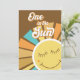 One in the Sun retro first birthday invitation is a great choice for any retro hippie bohemian theme 1st birthday event! The design features a large, cute, whimiscal sunshine that is in retro colours of orange, brown, yellow, and aqua. Beyond that, is a deep brown background with big bold retro lettering that says, "One in the Sun!". Then the invitation flips over to the backside, where the same design theme is carried out, and the party wording can be added. This invitation is a great 1st birthday idea for any Sunshine groovy retro theme party!