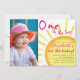 One In The Sun Pink and Orange First Birthday Invitation