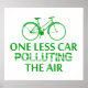 A silhouette of a green bicycle and below it the phrase "One less car polluting the air"