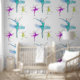 One line stroke colourful dancing balerina pattern wallpaper