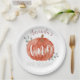 Cute watercolor orange pumpkin with eucalyptus leaves. 1st Birthday party paper plates