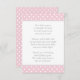 Enclosure card for baby shower invitations includes a request for guests to bring a book in lieu of a card. Includes a light rosy pink and white polka dot border with grey text.
