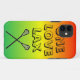 Red, yellow and green case that has one love lax written on it with lacrosse sticks!