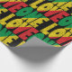 Get those reggae vibes with this typographic print gift wrap, patterned with Rasta flag coloured red, yellow and green ONE LOVE text