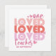 One Love Teacher Pink Modern Personalised Name Throw Pillow Cushion features the text "one loved teacher" in modern pink script typography accented with love hearts and personalised with your custom name. Add your custom message on the reverse. Perfect for your favourite teacher for teacher appreciation, birthday, Christmas, holidays and more. Designed by Evco Studio www.zazzle.com/store/evcostudio
