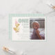 Soft green gingham and pink accents complete this darling lucky duck party invitation. A soft yellow duck with a cute pink party hat makes this a festive theme for a First Birthday celebration.