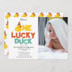 A beautiful hand drawn duck custom photo birthday invitation design. A cute "One lucky duck" yellow duck themed first birthday party invitation. A cute duck themed birthday invitation that can be customized to your details.