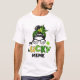 One Lucky Meme Messy Bun Leopard St Patrick's Day T-Shirt