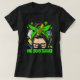 One Lucky Teacher Messy Bun St Patricks Day Clover T-Shirt