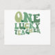One Lucky Teacher St Patricks Day Retro Groovy Postcard