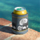 front-side: black and white illustration of a guy asking for one more beer, with lots of bottles on the table; back-side: beer-bottles and custom name and initials. A cool and funny idea for someone who loves drinking