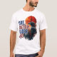 This white t-shirt features a powerful design with a majestic bald eagle in profile, set against a dramatic backdrop of a red moon or sun, a silhouetted cross, and a forest. The text "ONE NATION UNDER GOD" is prominently displayed in a patriotic font, along with "EST. 1776" below.