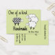 An adorable way to personalise your handmade gifts. These hang tags feature a unique little sheep who stands out from the crowd. Just like your handcrafted items. Personalise with your own information or leave blank to fill in individually. Punch a hole in the card and hang on item for a professional finishing touch. Original artwork by Night Owl's Menagerie, 2011