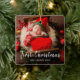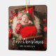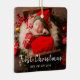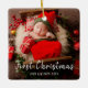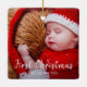 Modern and elegant Merry Christmas, baby's first christmas. White handwritten text squared christmas ornament.