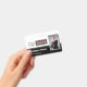 Easy to adjust company or business employee name badge with black and grey striped background. All text is adjustable. Add your own company logo. Made for long horizontal styled logos. If the fast template adjustment does not work for your logo, click on the customise further option to be able to delete and add your logo to the card. One photo option.