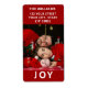 Add these beautiful return address labels to your Christmas mailings. They feature a photo of your choice and a lovely message about being joyful this holiday season. The word "JOY" is at the top of your photo, and your family name is at the bottom. Don't hesitate to buy yours now!