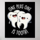 One Plus One Is Tooth Funny Dental Pun features a cute pair of teeth doing a little mental math . Perfect Puns gift for family and friends who love cute tooth puns.