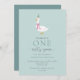 Cute first birthday invitation, featuring "One Silly Goose" theme with cute illustration.
