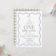 One silly goose! first birthday with goose, dusty blue wavy rectangle frame and sage green text.