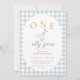 ONE Silly Goose Blue Gingham Daisy First Birthday Invitation
