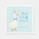 One Silly Goose Blue Plaid Boy 1st Birthday Party Napkin