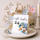 the story of a joyful milestone— very first birthday, a celebration wrapped in love, warmth, and a touch of whimsy. The design centres around a charming goose, lovingly illustrated as if plucked from the pages of a beloved children’s book. He’s not just any goose—He’s “one silly goose,” dressed for a party in a striped hat and floral crown, proudly clutching a Blue balloon. His expression is wide-eyed, innocent, and full of personality—just like a one-year-old discovering the world.
