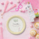 This paper plate is easy to personalize with your child’s name — perfect for busy parents who want something cute, modern, and effortless. It’s a lovely choice for a girly first birthday party, spring celebration, or farmyard-themed bash!