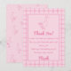 As you see this 1st birthday thank you card features the one silly goose pink theme. With hand drawn goose and gingham checkboards with hand written script of thank you and thank you paragraph template. All of this design template is easily customisable by clicking on the personalisation button.