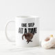 One step at a time grey cat coffee mug