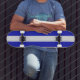 One White Racing Stripe on Blue Themed Longboard