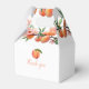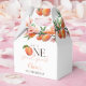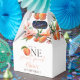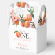 These charming first birthday party favour boxes feature a peaches and blossom watercolor, along with elegant script typography. Designed by Thisisnotme©