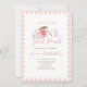 Welcome your friends and family to your child's first birthday with this beautiful peach-themed invitation! This gorgeous invitation features a watercolor peach design, along with a classic gingham pattern in a delicate peach hue. The combination of the two creates a stunning invitation that is sure to make a lasting impression. Perfect for a first birthday party, this invitation is sure to make your celebration one to remember!