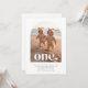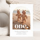 A simple Twin First Birthday invitation featuring your own photo in an arch shape and the words 'one' and a little heart over the top.