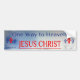 This Christian faith bumper sticker will let others know that Jesus Christ is the one and only way to Heaven, John 14:6.