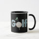 Golfing mug for golf lovers and sports fans. Golf Logo in soft shades of blue on black