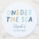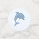 Cute party decor confetti for an under the sea theme boy's 1st birthday party. There are illustration of blue ocean creatures.