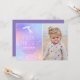 This whimsical Oneder the Sea mermaid birthday invitation checks all the boxes for a perfect 1st birthday. The dreamy colourful gradient and sparkle mermaid tail is the perfect combination of festive fun. The elegant font and playful mermaid tail makes this card a fun and stylish choice to set the tone for a first birthday!