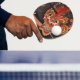 This ping pong paddle is decorated with a reproduction of two plates of a Japanese woodblock print triptych, Oeyama Shutendoji, created in 1858 by ukiyo-e master Utagawa Yoshitsuya. On one side of the paddle, we see the giant head of the oni king Shutendōji of Oeyama, while the other side features his enemy, the famous samurai Minamoto no Yorimitsu.