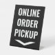 This is a black "Online Order Pickup" pedestal sign with a down arrow. It is used to indicate where customers can pick up their online orders.