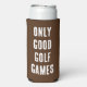 "Only Good Golf Games." Funny Quote. Brown Seltzer Can Cooler