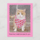 Fat kitty with big eyes with Valentine greetings. Text and background colour are customisable.