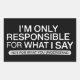Only Responsible for What I Say Sarcastic Humor Rectangular Sticker