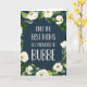 Only the best moms get promoted to Bubbe! Celebrate Mother's Day, Grandparents Day or a new grandma to be with this sweet greeting card bearing the sentiment in white lettering on a navy blue background accented with white and ivory watercolor flowers and lush green botanical foliage. Add an optional photo and pre-printed message to the inside to create a unique personalized greeting for Bubbe.
