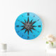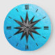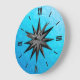 Onyx compass rose - turquoise glass background large clock